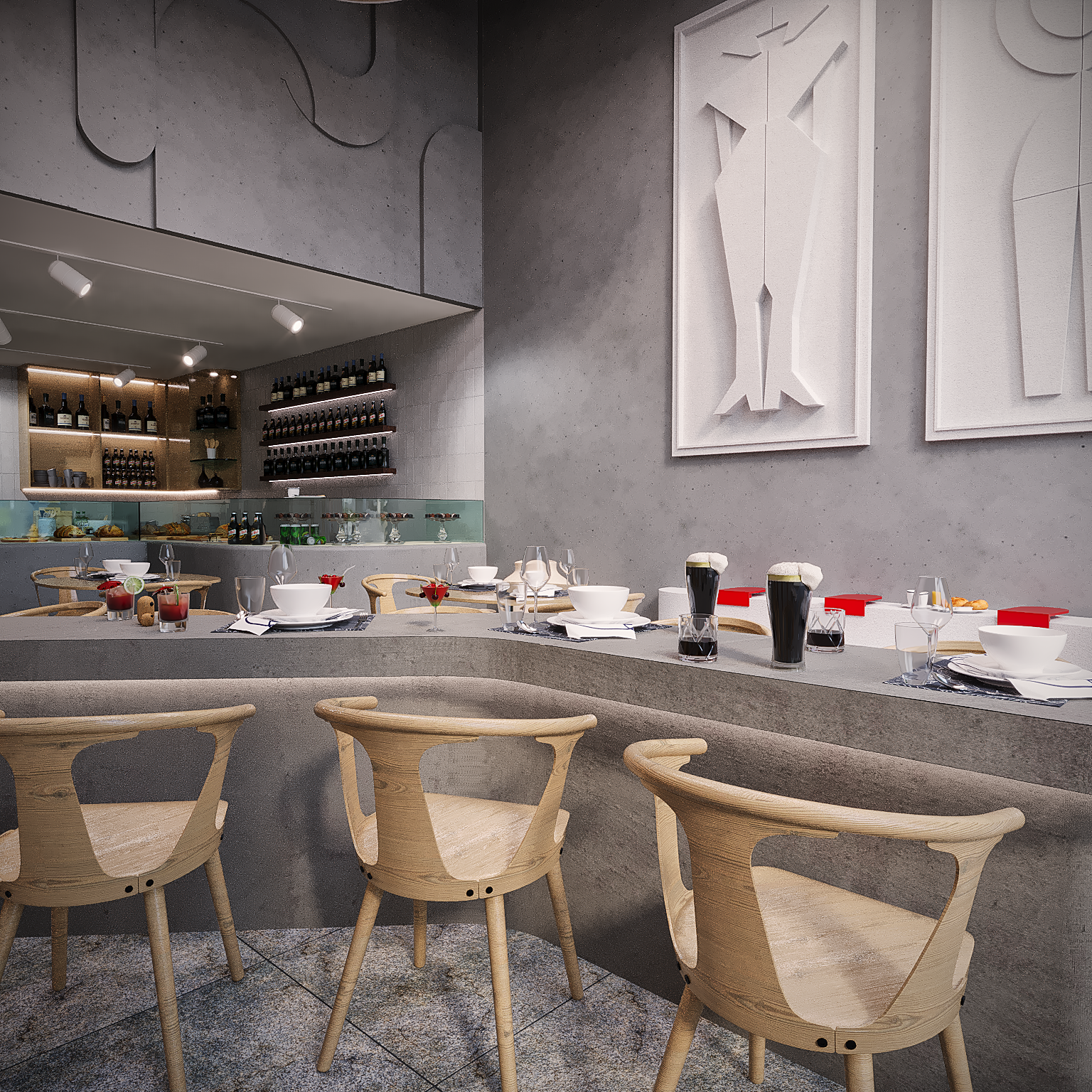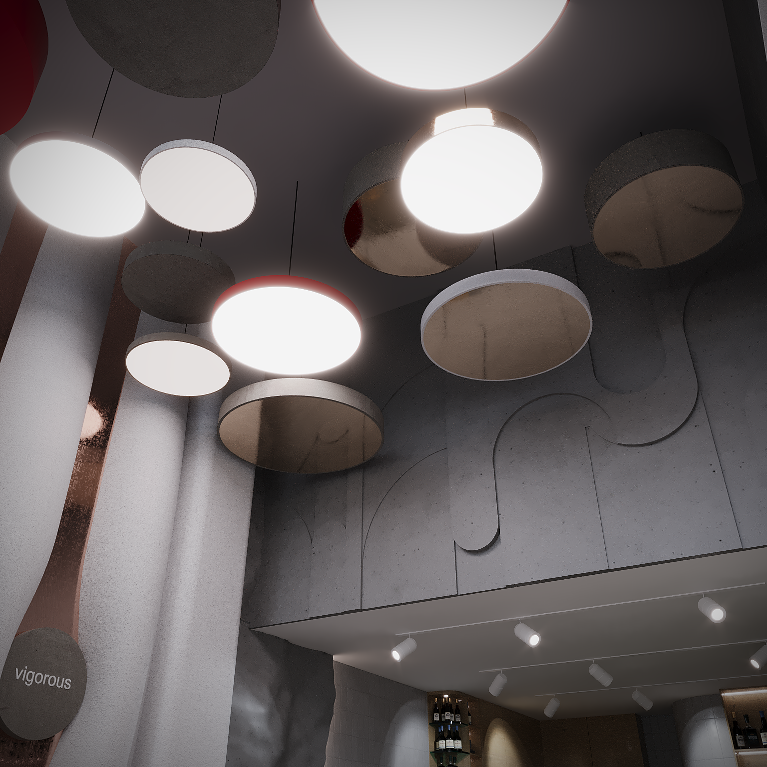 با توجه به لوکیشن پروژه و حس فضایی ان سعی بر ان بود که صحنه نمایش را تاحدودی با خلق فضا داخل کافه ایحاد کنیم. با طراحی اختصاصی تابلوها و نیمکت پروژه حس فضایی تئاتر رو حفظ کردیم. در این پروژه همه دیتیل ها اختصاصی هست و ابجکت ها و عناصر معماری با کانسپت اختصاصی کافه ساخته شده است.